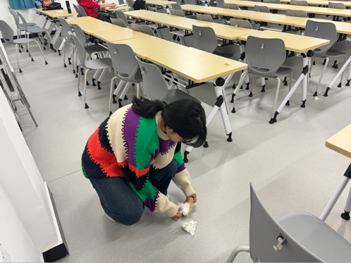 活动期间,全院学生积极投身校园文明建设实践:在教室区域,学生主动承担黑板擦拭、地面清洁等工作,以实际行动维护教学环境整洁;在公共空间,同学们俯身捡拾散落垃圾,规整车辆停放秩序,让文明细节浸润校园每个角落。一系列实践行动,不仅优化了校园环境,更培养了学生“校园是我家,文明靠大家”的责任意识。