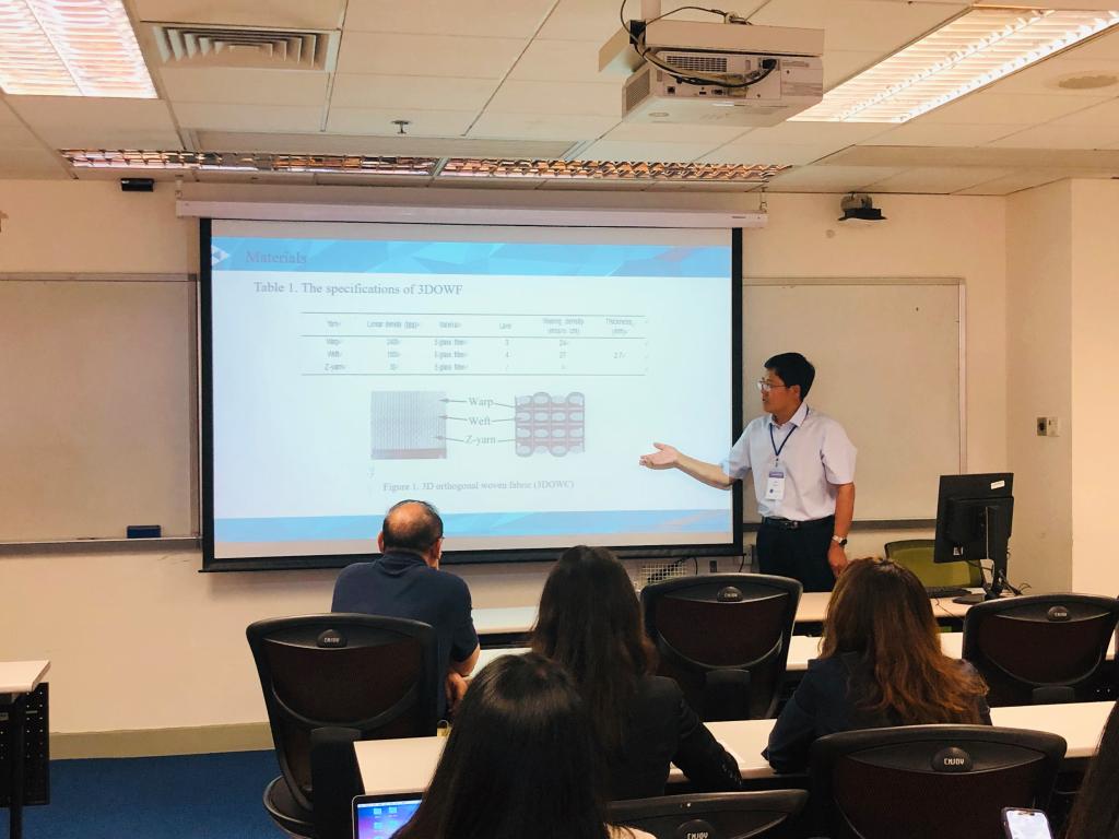 论坛开幕式上香港理工大学的范金土教授做了《智能与多功能纤维物料和服装的最新进展》、台湾辅仁大学蔡淑梨教授做了《可持续性时尚新思维》、江南大学蒋高明教授做了《国内外针织新技术研究进展》、苏州大学张克勤教授做了《新型结构色纤维和面料的研究和制作》的主题报告。我院四位教师赴香港理工大学参加了此次学术论坛,并在分会场作专题报告。