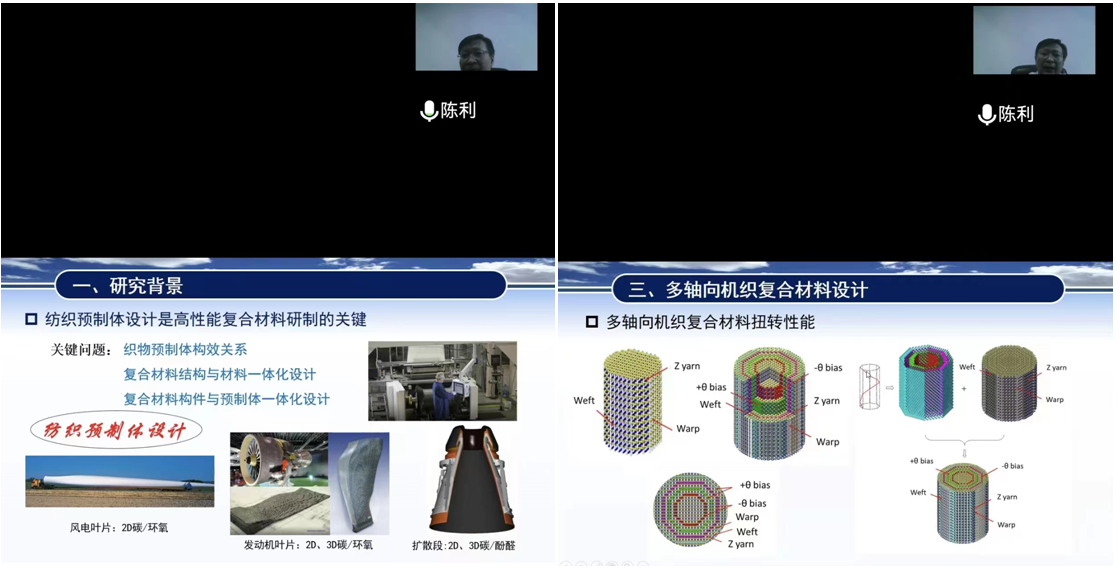 本次报告围绕先进纺织复合材料的构效设计,介绍了纺织复合材料的数字化设计制造方法、高性能纤维纺织预制体和结构/功能复合材料的最新研究进展,对新型多轴向层联机织复合材料的构效关系、针刺预制体及其复合材料材料的力学和热学性能等进行了深入分析,在此基础上,对先进纺织复合材料设计理论和技术进行分享。