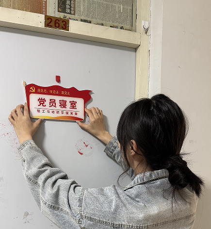 活动中,学院领导、辅导员深入学生宿舍,将醒目的红色标牌张贴于党员宿舍门牌及床铺位置,公开党员姓名、专业班级、入党时间等,激励学生党员“亮身份、作表率”,并主动接受师生监督。学生党员们纷纷表示:“挂牌既是荣誉,也是责任。我们将以更高标准要求自己,带头营造整洁、文明、互助的宿舍氛围,用实际行动带动身边同学共同进步。”