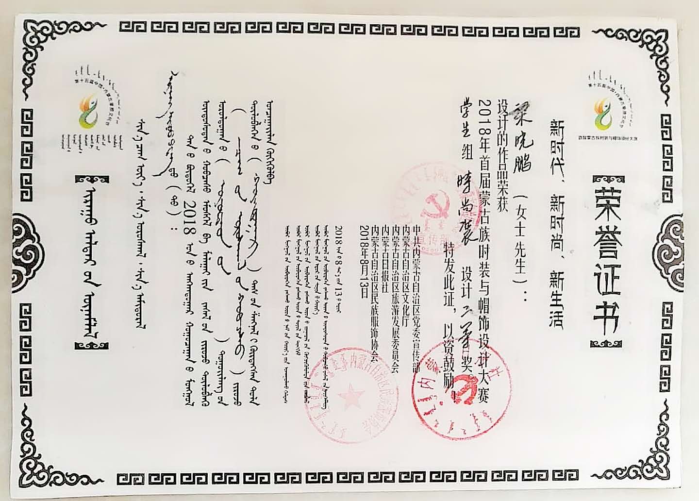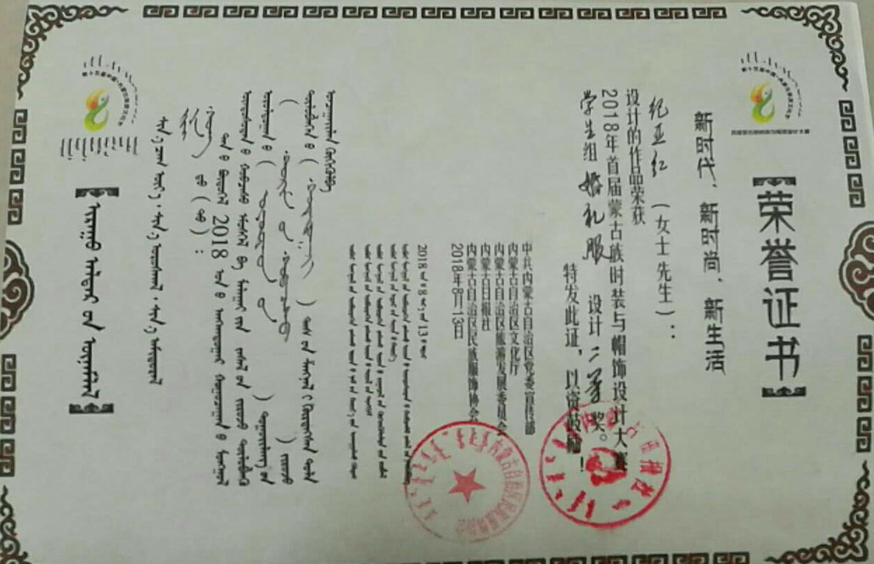 以“新时代、新时尚、新生活”为主题的首届蒙古族时装与帽饰设计大赛于2018年6月1日-8月5日在内蒙古呼和浩特举办。我校由beats365闫亦农副教授指导,纪亚红同学完成的蒙古族婚礼服系列设计《珠乌德》荣获学生婚礼服组二等奖;由景韶佳副教授指导,梁晓鹏同学完成的创意蒙古族服装系列设计《草原浪子》荣获学生时尚组二等奖。