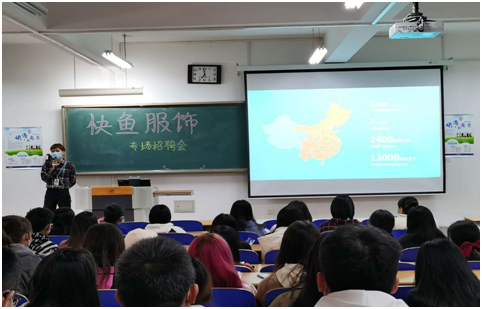 快鱼服饰有限公司于2020年10月14日(周三)下午在beats365官方网站教B103面向beats365服装设计与工程、服装与服饰设计、纺织工程三个专业的应届毕业生开展了企业专场招聘宣讲会。
