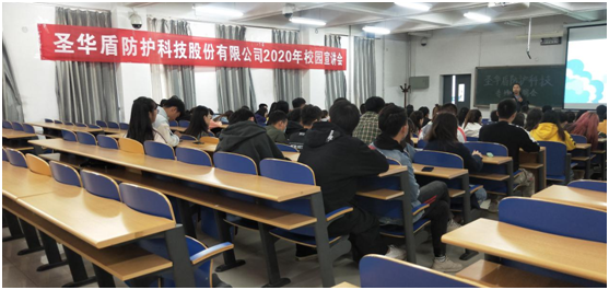 宣讲前,企业宣讲人向同学们介绍了企业历史及同行业优势。圣华盾防护科技股份有限公司于2008年02月22日在无锡市工商行政管理局登记成立。法定代表人陈太球,公司经营范围包括特种劳动防护用品、安全防护用品的研发。圣华盾防护科技股份有限公司是一家提供个体安全防护解决方案的高新技术企业,拥有先进的智能化生产线及科学完善的标准化管理体系。随后,宣讲人又向同学们介绍了公司招聘条件、工作环境、人才培养计划及薪资待遇福利,并对同学们提出的问题进行一一解答。