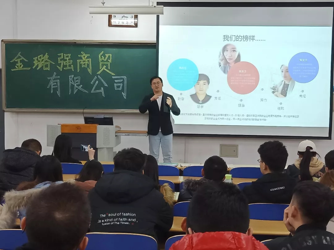内蒙古金璐强商贸有限公司成立于2005年,总部位于世界稀土之都——包头市。公司立足于家乡包头,辐射内蒙古其他城市以及银川、西宁等周边省市开展业务。多年的经验积累,金璐强公司已成长为一家管理架构完善、业绩稳健增长的专业品牌代理公司。对公司概况进行了具体介绍之后,宣讲人又对公司代理的品牌进行了介绍,尤其针对公司主营品牌之禾,进行了细致的讲解。为了让同学们更好的认识公司的发展方向,宣讲人对公司的组织架构进行了介绍,包括公司的团队和人才计划。最后,企业负责人介绍了公司的薪酬福利体系,以及量身定做的职业规划。