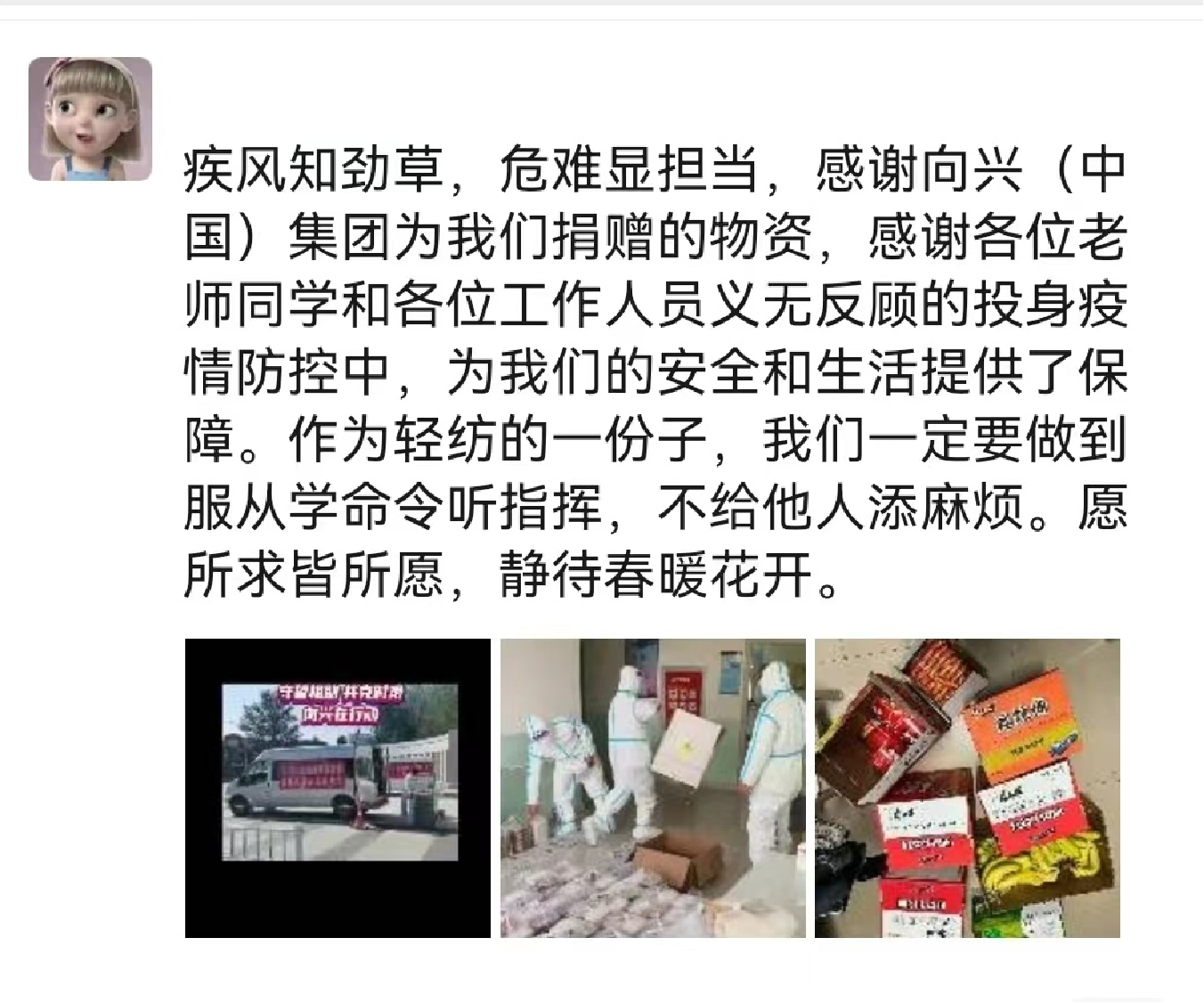 面对疫情防控关键时期,爱心企业表示希望通过捐赠物资为公司疫情防控防控工作尽一点绵薄之力,以实际行动践行企业社会责任。点滴奉献聚大爱,众志成城共抗疫。爱心企业的无私捐赠,是对参与疫情防控师生的关心和激励,更坚定了校企携手共同打赢这场抗击疫情阻击战的信心与决心。