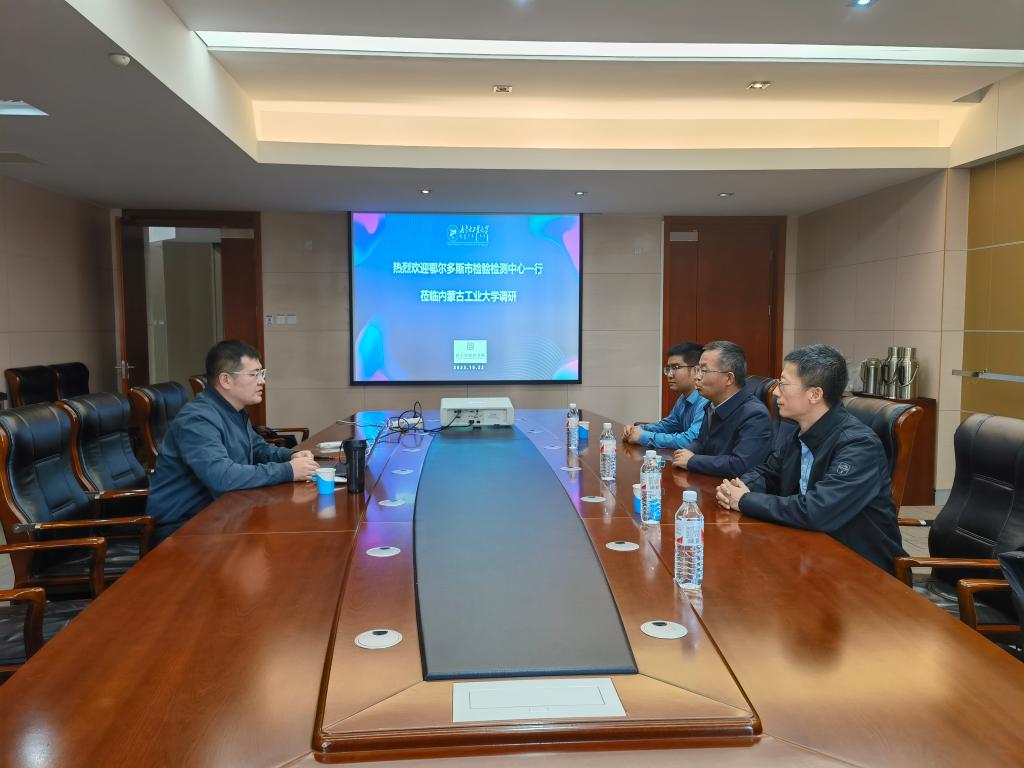 2023年10月22日,鄂尔多斯市检验检测中心主任闫永升、副主任薛彦伦等一行3人到beats365开展调研考察和座谈交流,学院副经理徐鹏陪同参加活动。