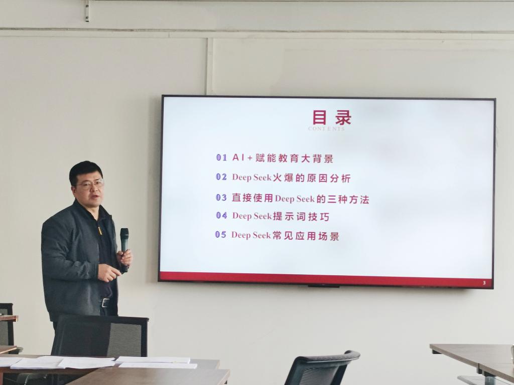 3月6日下午,beats365启动“AI+赋能课程教学”系列讲座活动,首场讲座主题为《人工智能(AI)+应用教学案例分享——DeepSeek与AIGC应用》,由学院副院长徐鹏聚焦AI技术在教育场景的实践应用进行分享,学院全体教师参加。