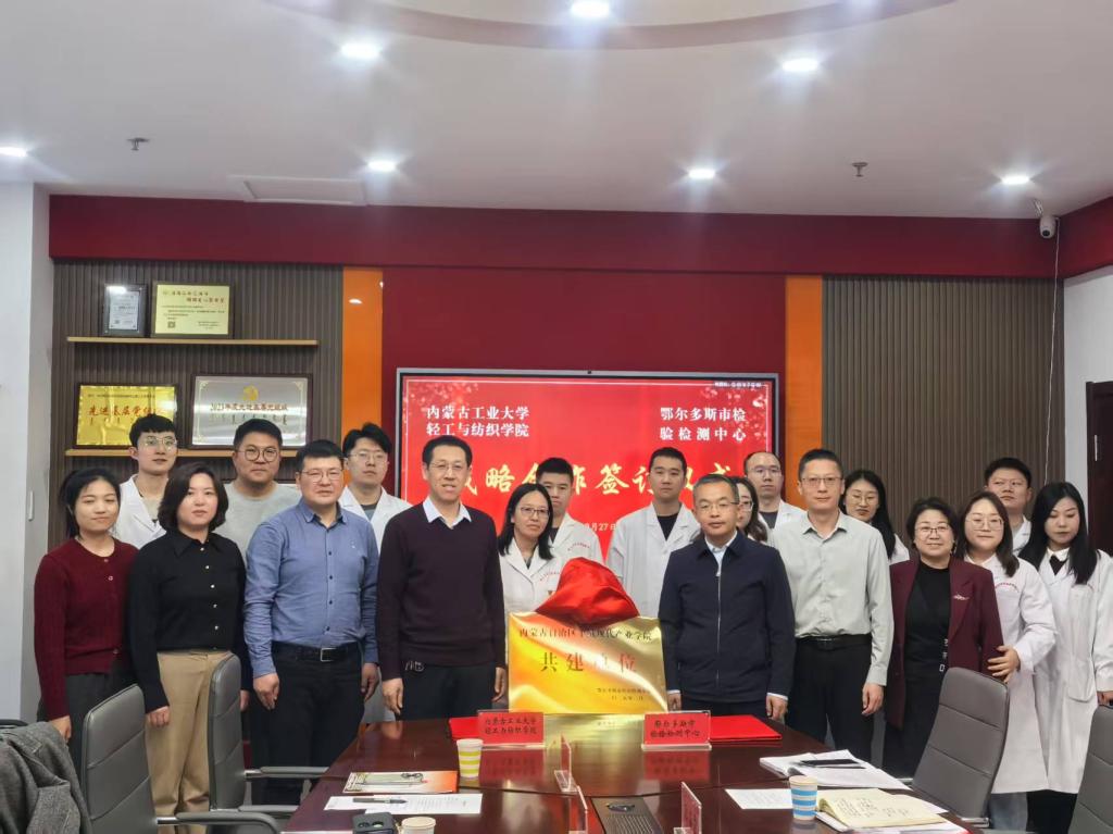 交流会上,双方共同举行了羊绒现代产业学院共建单位揭牌仪式、签署了战略合作协议书,标志着双方在羊绒产业人才培养、科学研究、成果转化等方面的合作迈上了新的台阶。同时双方就鄂尔多斯市科技计划项目联合申报进行了深入交流,进一步明确了科技合作的方向和目标,为共同申报和实施科技计划项目奠定了坚实基础。活动最后,双方还就拓展就业岗位、人才培养等方面问题进行了座谈交流,并参观了鄂尔多斯市检验检测中心实验室。