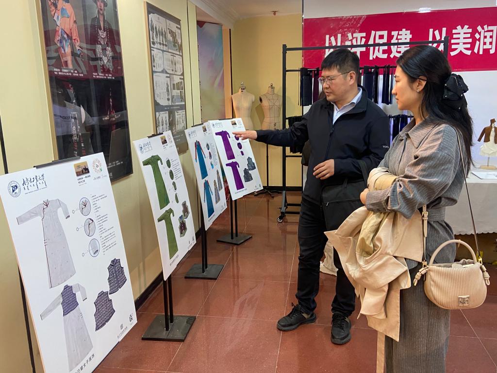民族服饰美育教学团队负责人史慧教授代表基地汇报了工作开展情况。她介绍,近年来,基地以“科技、时尚、绿色”为导向,围绕美育校内外辐射、民族服饰文化保护和非遗技艺传承等领域,开展了系列科普活动,推动科普教育与创新创业深度融合,累计惠及校内外受众超5000人次。