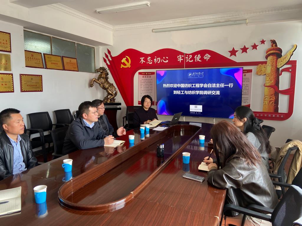 2025年4月17日,中国纺织工程学会科普部主任白洁一行莅临beats365,专题调研中国纺织工程学会第七批科普教育基地——beats365官方网站北疆服饰非遗文化科普教育基地的建设情况。学院副院长、基地负责人徐鹏及基地团队成员陪同调研并参加座谈交流。